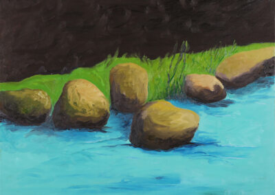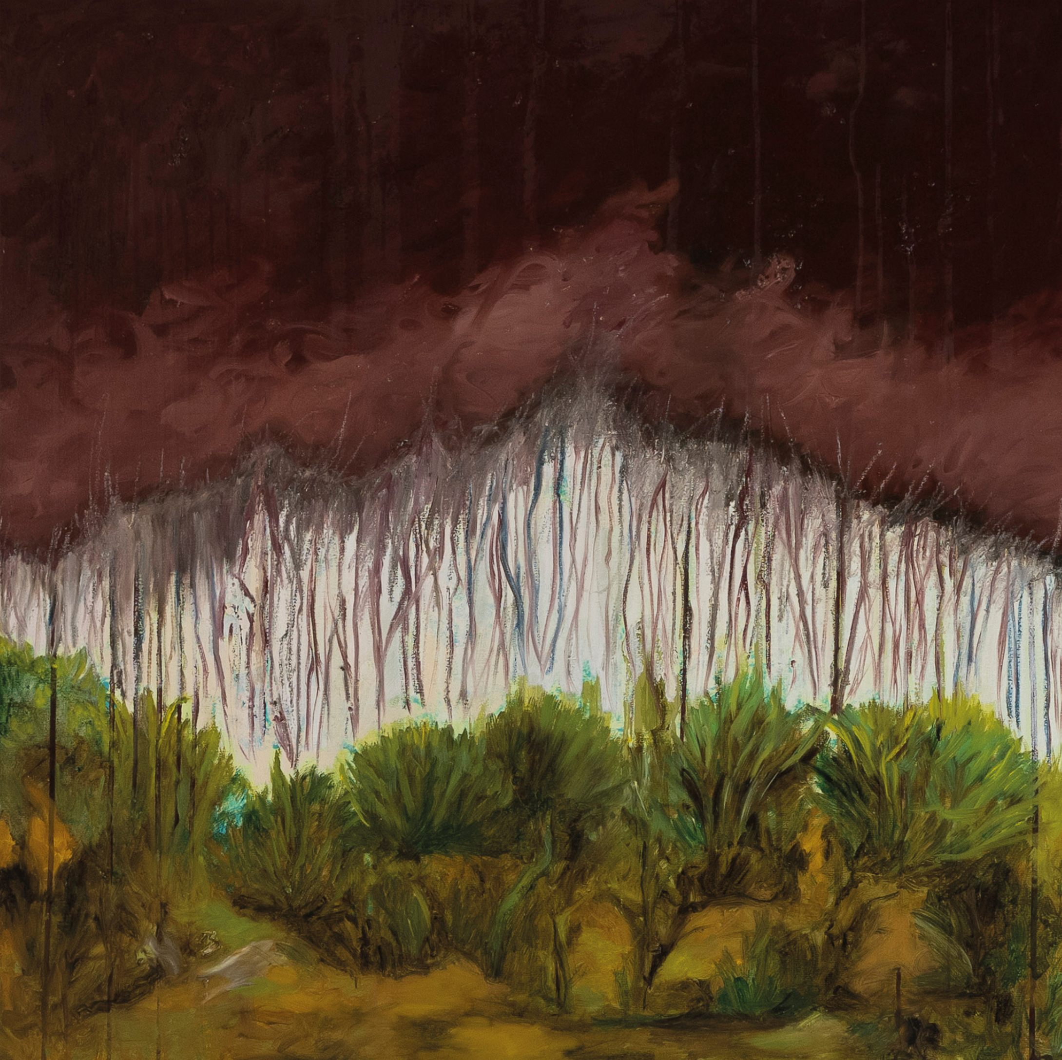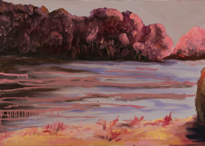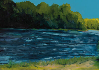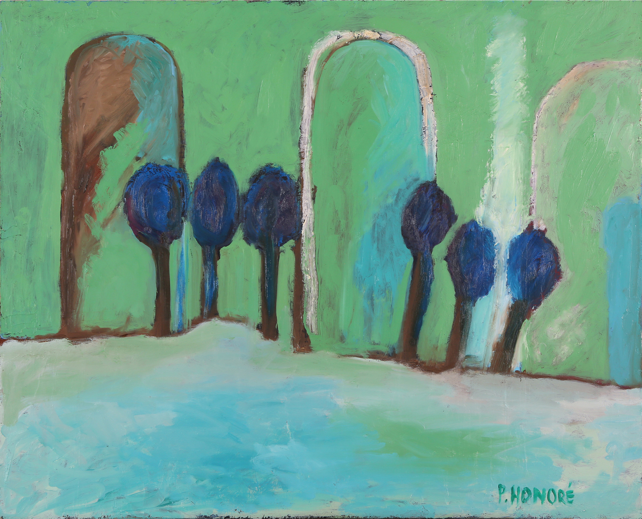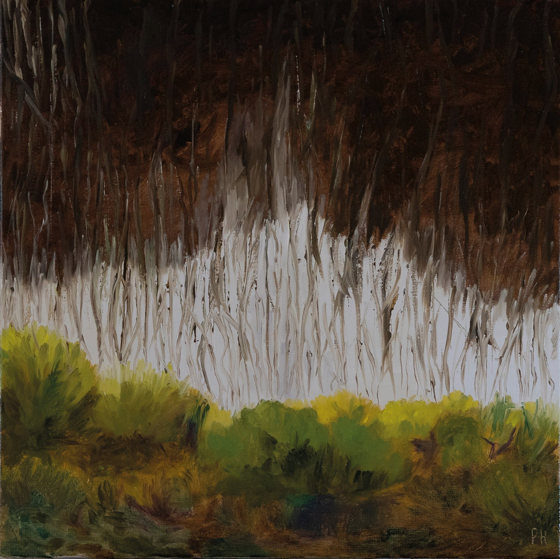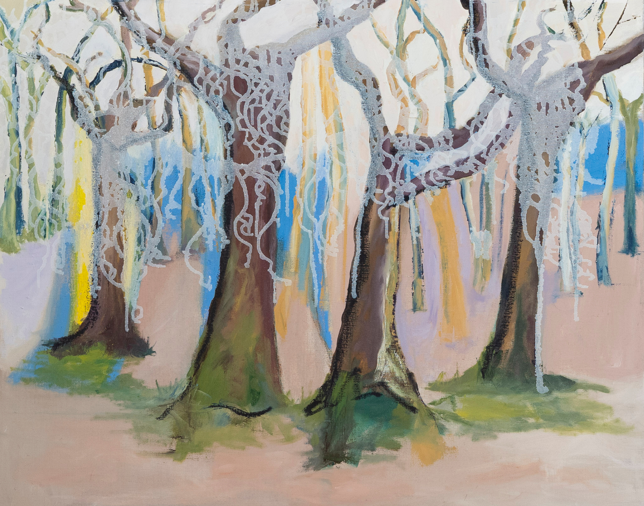 Les arbres observés, tendus entre ciel et terre, silencieux et également bruissants de mille vies minuscules, dansent en couleur d’une façon tout à fait personnelle sous mes pinceaux.