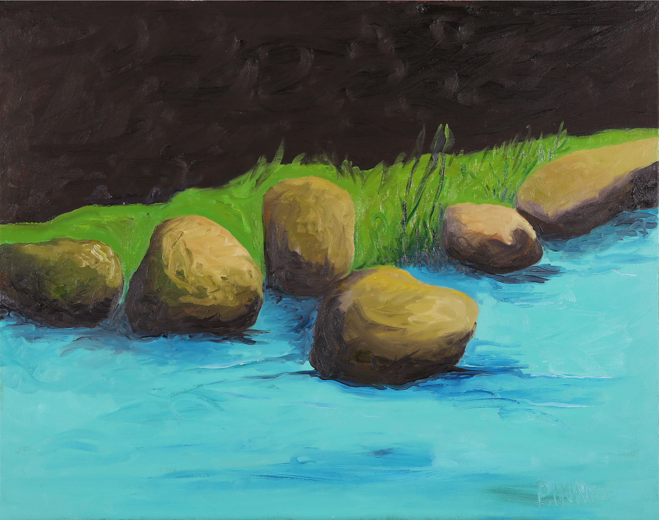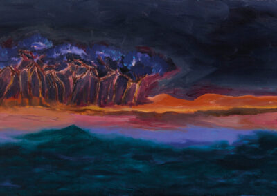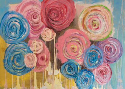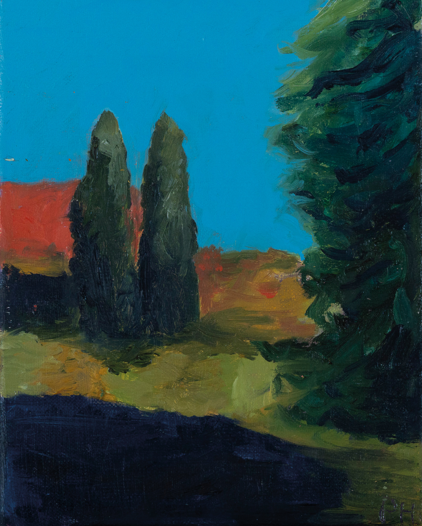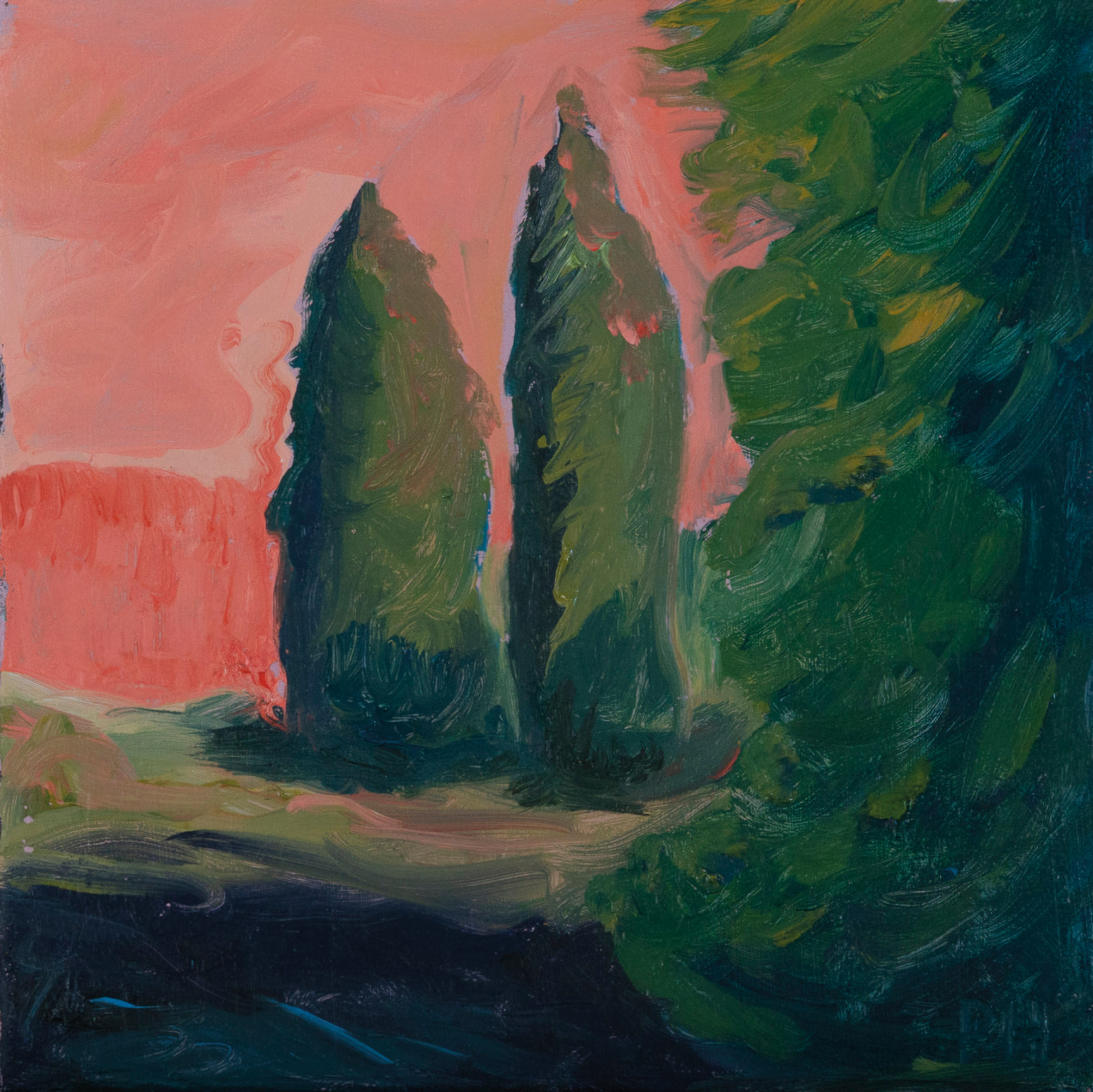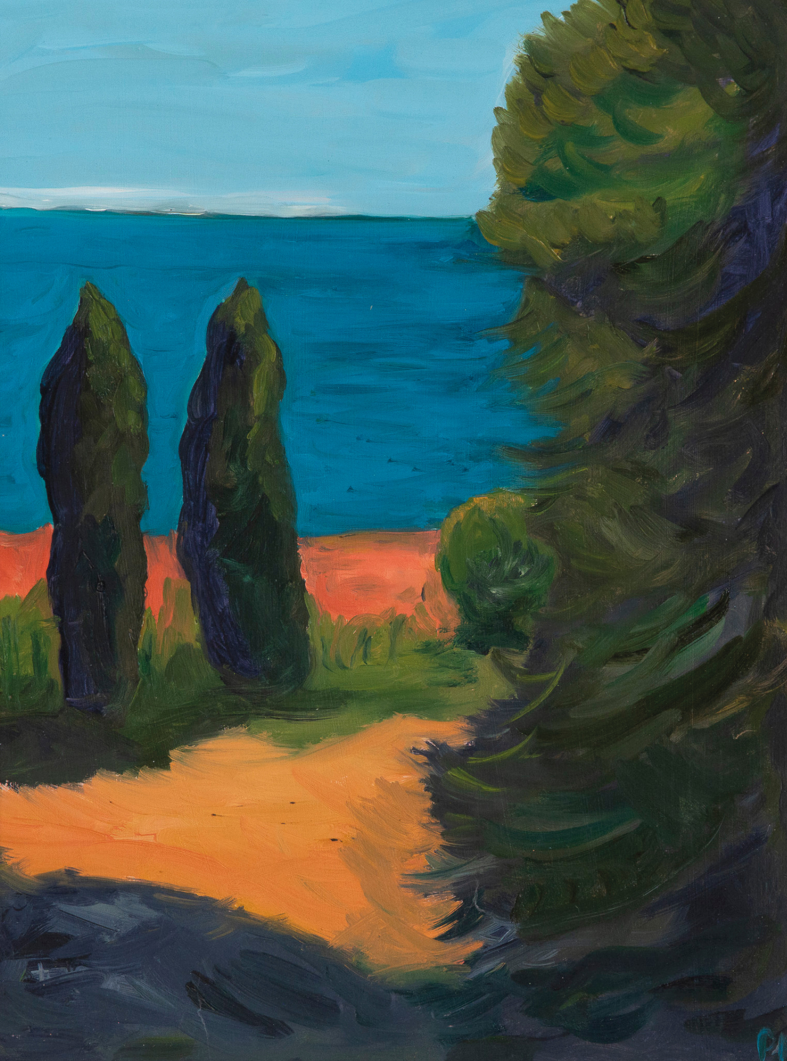 Les arbres observés, tendus entre ciel et terre, silencieux et également bruissants de mille vies minuscules, dansent en couleur d’une façon tout à fait personnelle sous mes pinceaux.