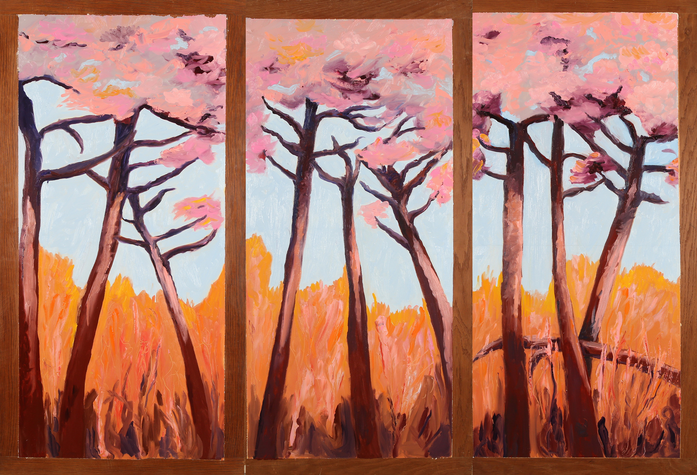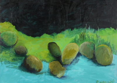Depuis mon installation à Blois en 2020, ces petits dessins apparemment insignifiants ont fini par devenir signifiants lorsque j’ai commencé à peindre toutes ces visions éphémères et magiques nées de l’observation de nos futaies et de nos sous-bois.